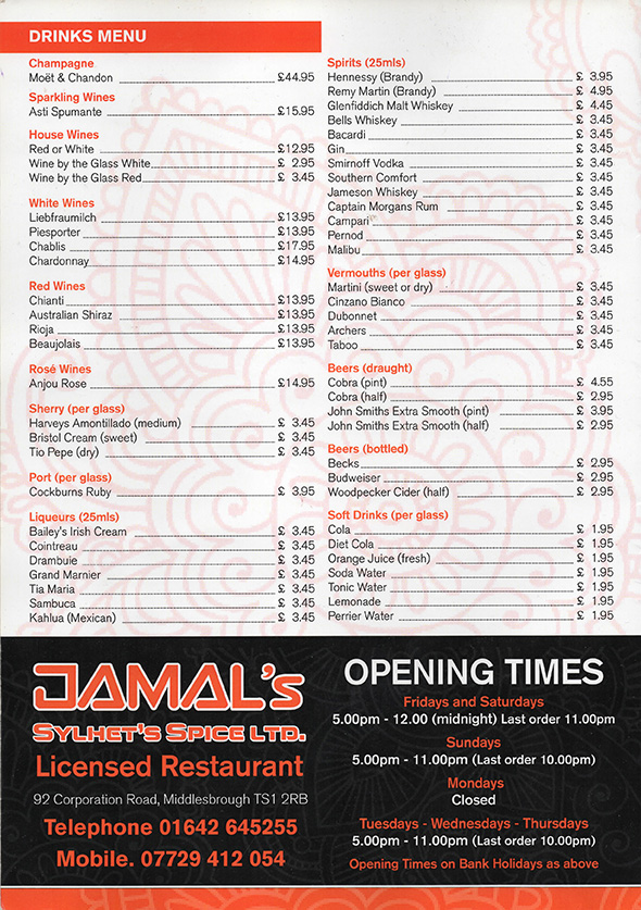 Jamal’s Indian Restaurant in Middlesbrough, one of the focal points of the town and has been there since 1996. A true exquisite Indian Dinning Experience can be guaranteed. All the food is freshly prepared and cooked to order by Jamal himself. Thanks to many outstanding reviews, Jamal receives the Merit of Excellence from Trip Advisor which assures you a true Indian authentic dining experience here in Middlesbrough. Due to this popularity a short wait may be required between 6:30 to 8:30 on an evening. Come, relax and enjoy your time in his refurbished restaurant with a drink of well stocked bar. Perfectly positioned in the heart of Middlesbrough’s night life or cinema goers, couples or group celebrating we have a vibrant atmosphere 7 nights a week! To reserve your table contact Jamal on 01642 645255.